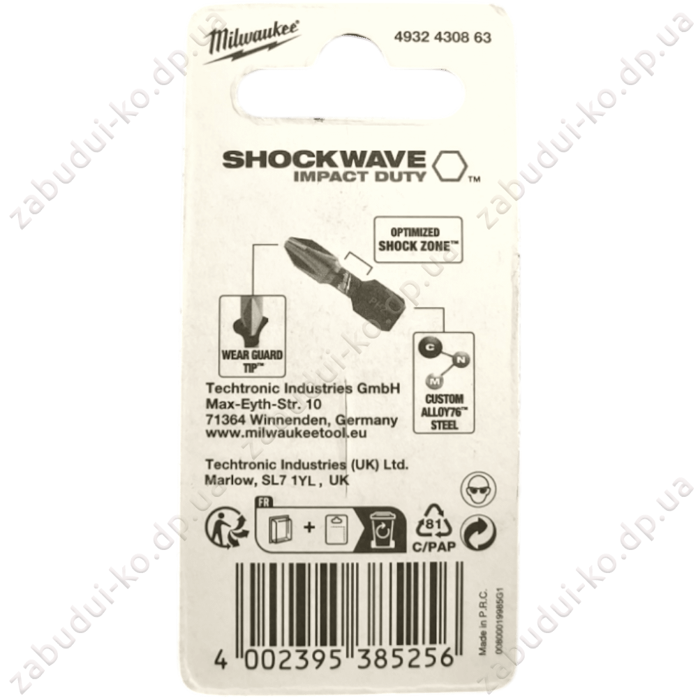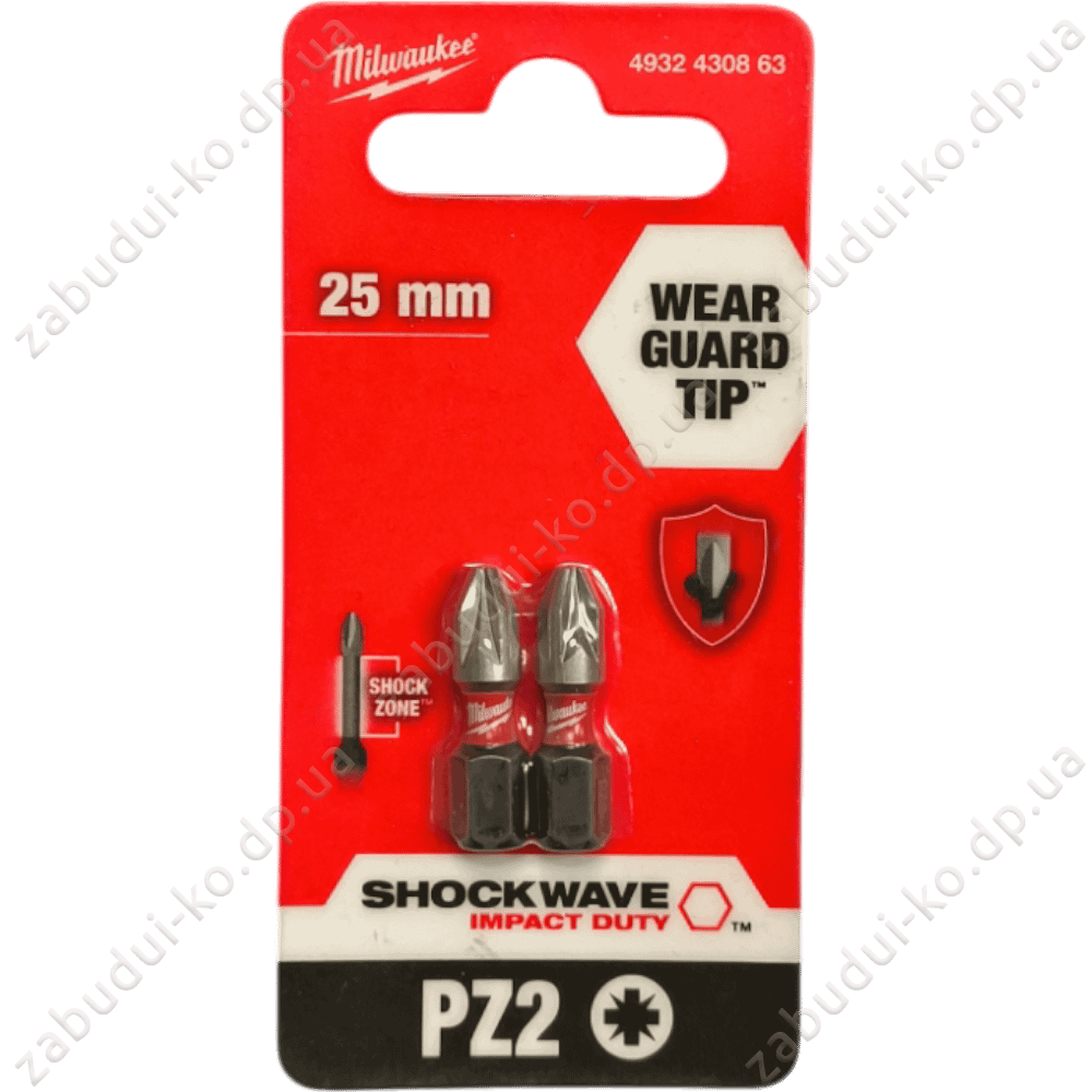 Головна Інструмент і обладнання Витратні матеріали Біти та насадки Біта Milwaukee Shockwawe PZ2х25мм (Блістер)(2шт/уп)