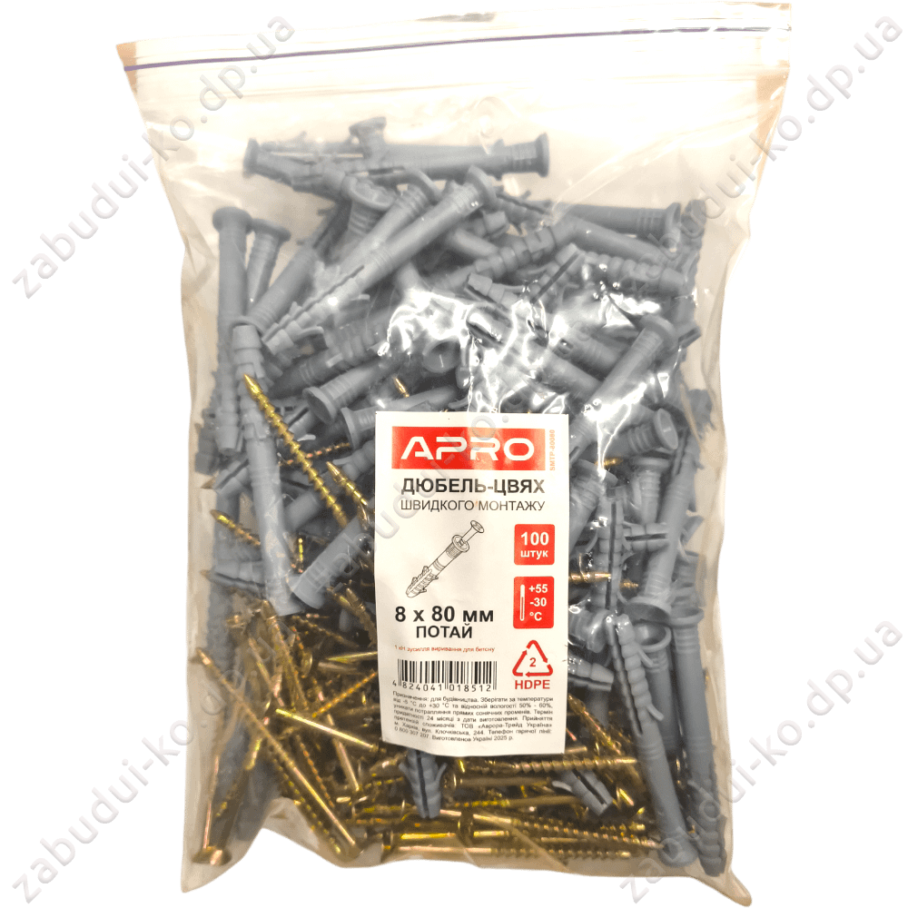 Дюбель-цвях швидкого монтажу Apro 8х80мм Потай (100шт)