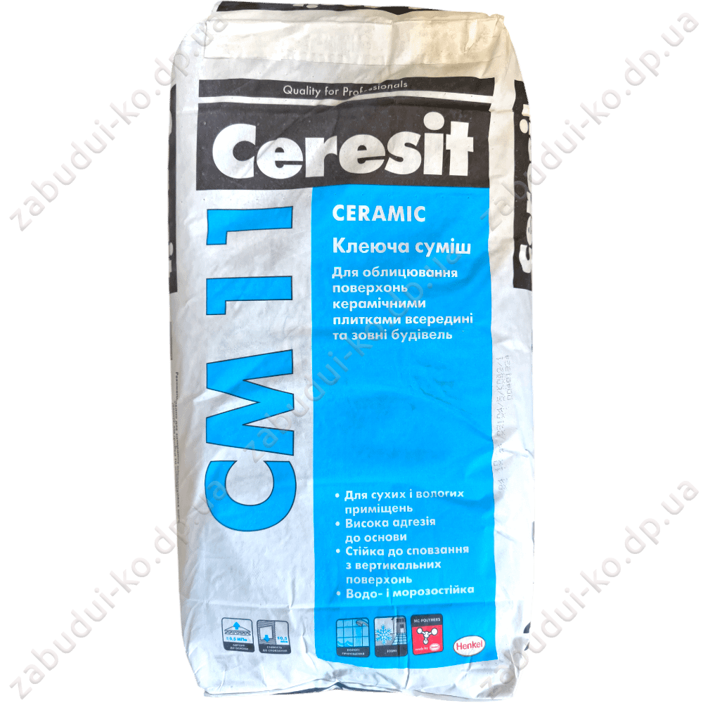 Головна Будівельні матеріали Сипучі матеріали Клеї для плитки Клей для плитки Ceresit CM11 25кг