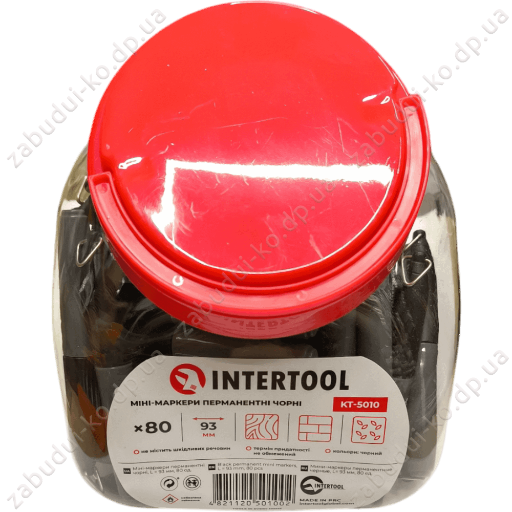 Головна Інструмент і обладнання Вимірювальний інструмент Маркери та олівці Маркер перманентний Intertool 93мм Чорний
