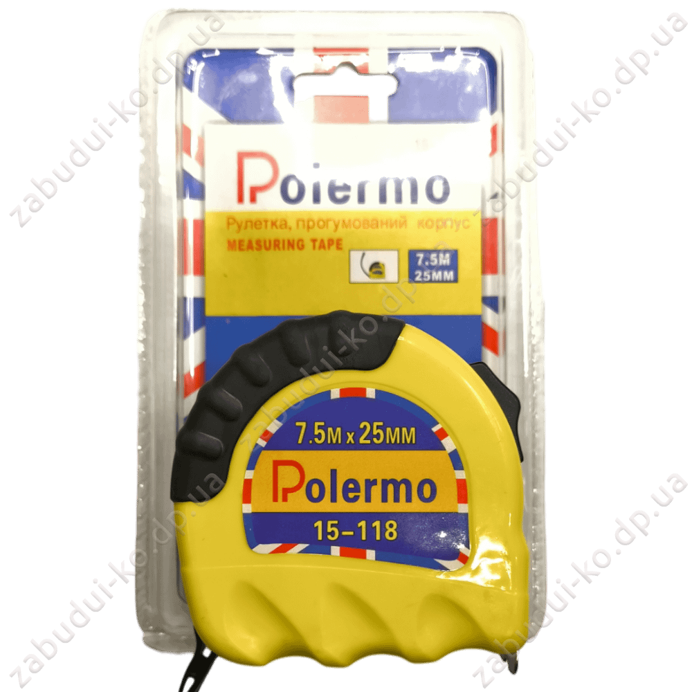 Головна Інструмент і обладнання Вимірювальний інструмент Рулетки Рулетка Polermo 7,5м x 25мм