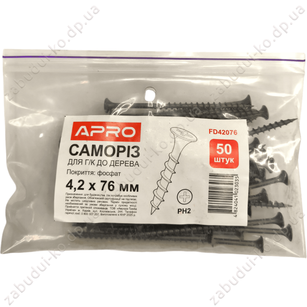 Саморіз для г/к до дерева Apro 4,2х76мм (50шт)