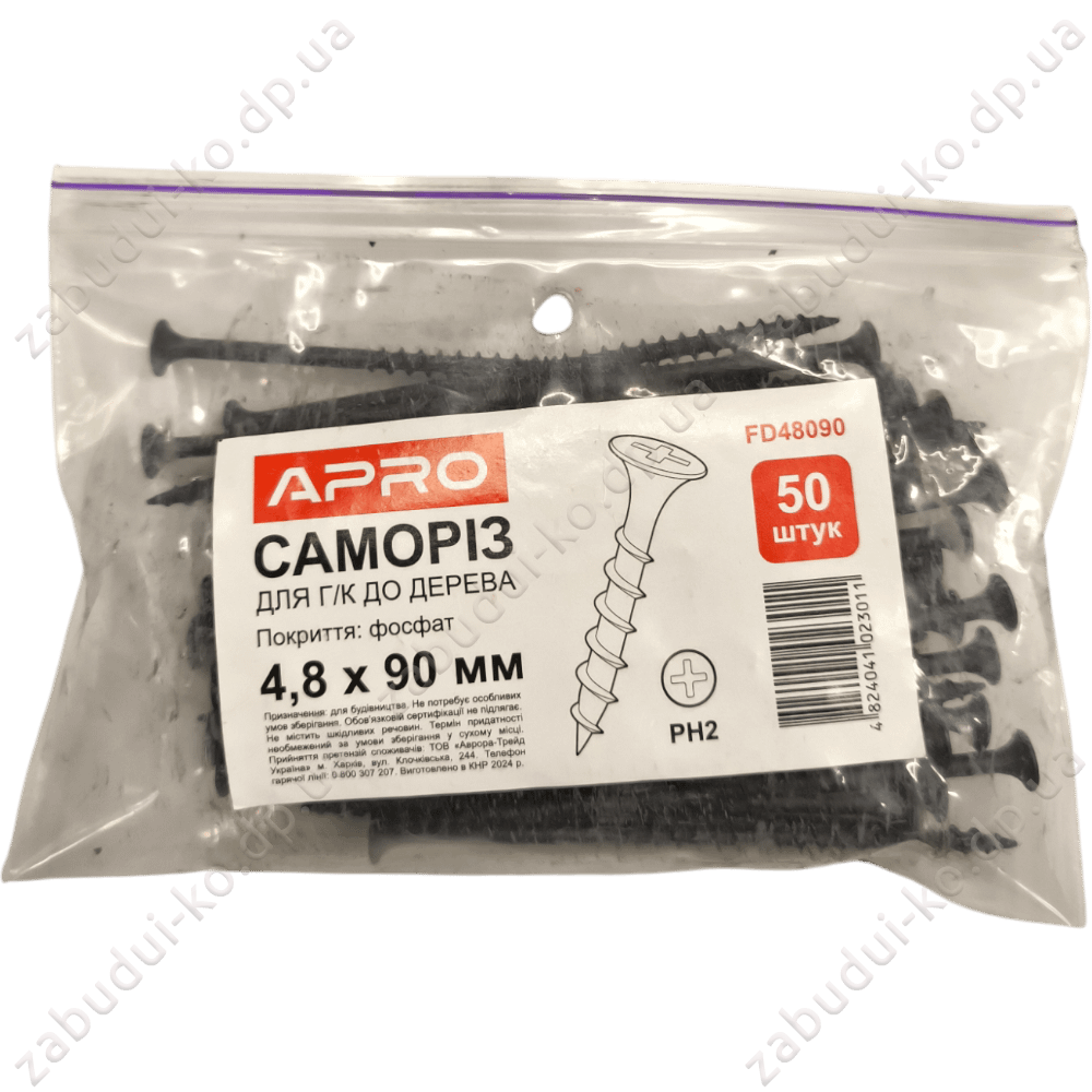 Саморіз для г/к до дерева Apro 4,8х90мм (50шт)