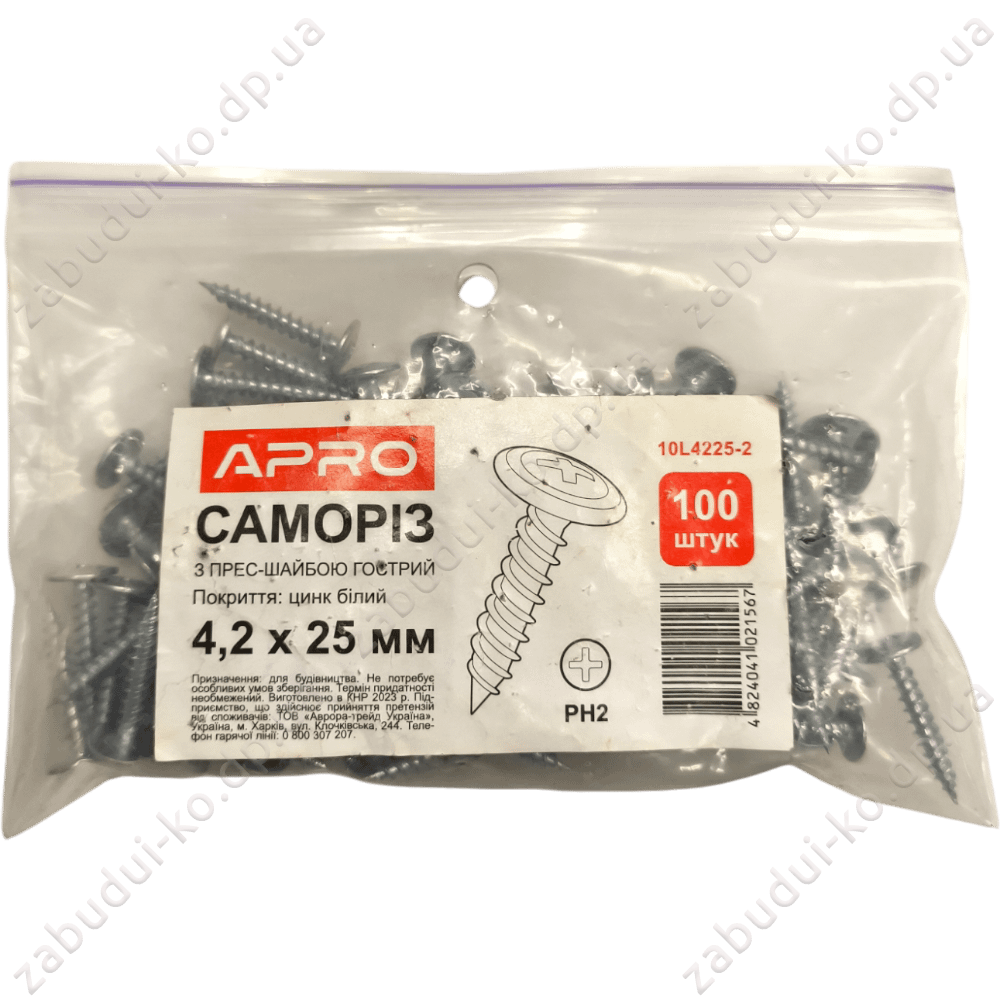 Саморіз з пресшайбою гострий Apro 4,2х25мм (100шт)