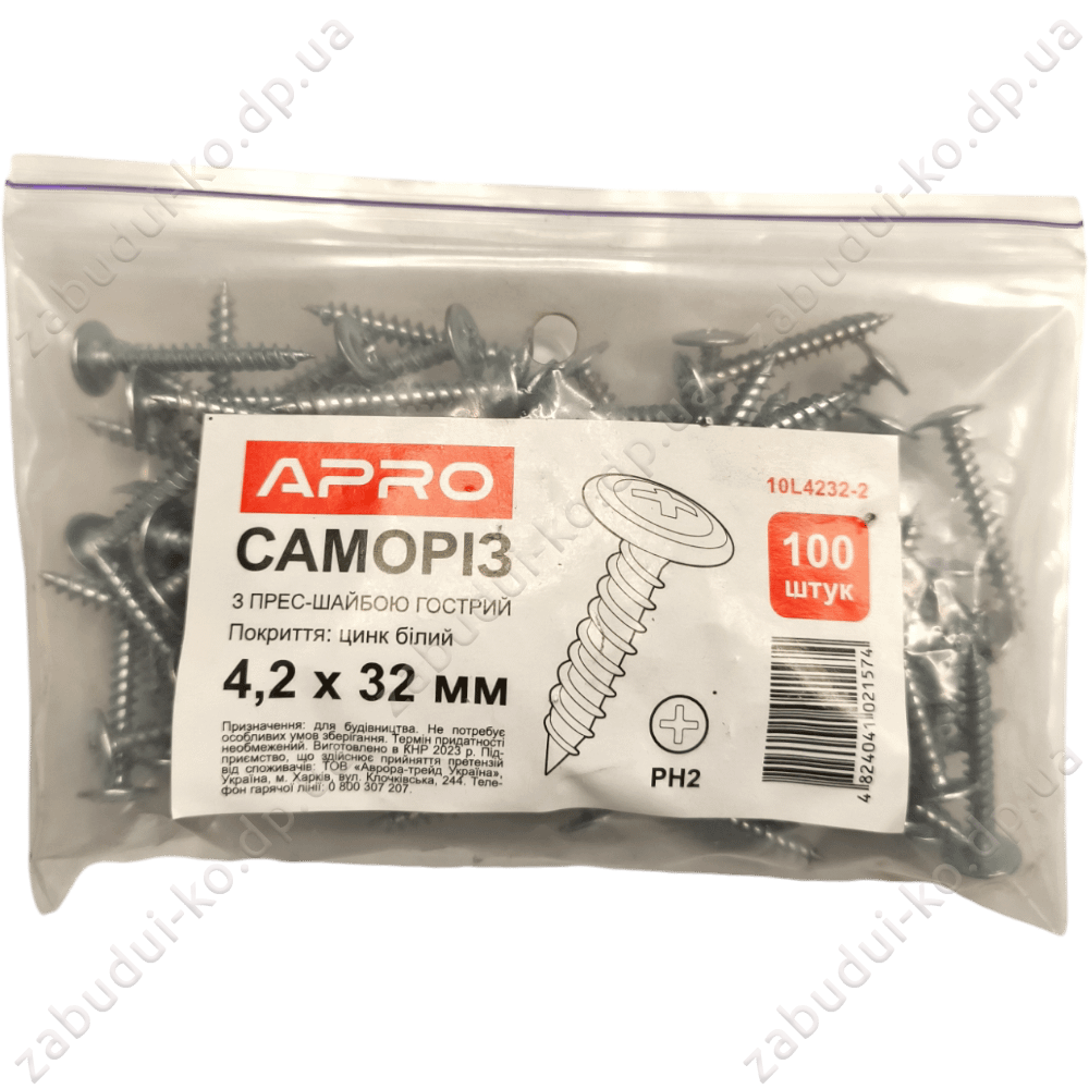 Саморіз з пресшайбою гострий Apro 4,2х32мм (100шт)