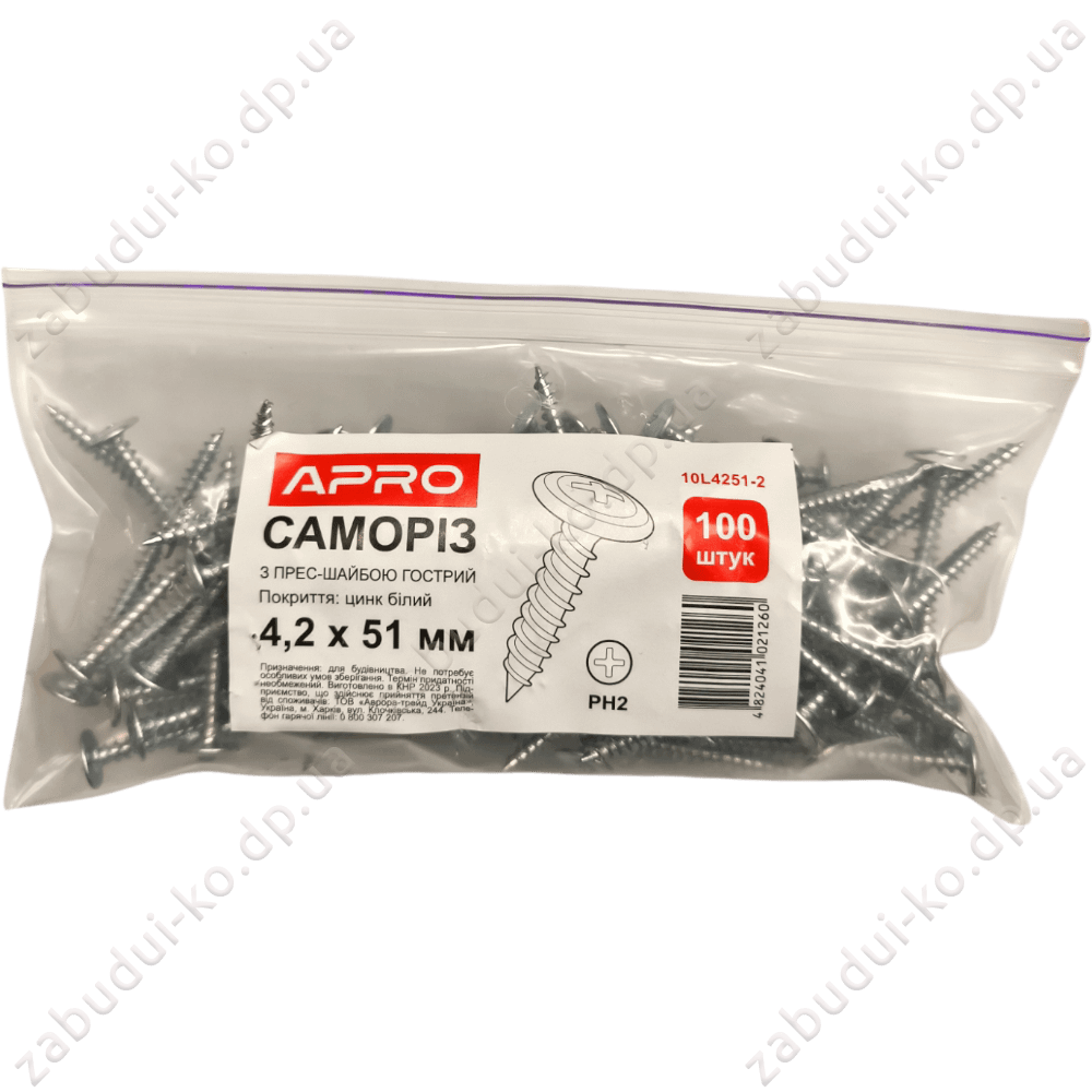 Саморіз з пресшайбою гострий Apro 4,2х51мм (100шт)