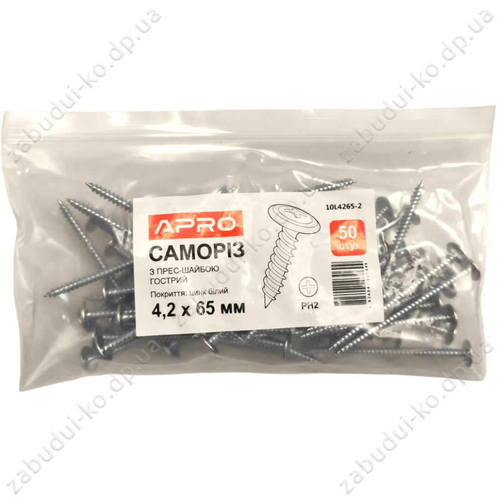 Саморіз з пресшайбою гострий Apro 4,2х65мм (50шт)