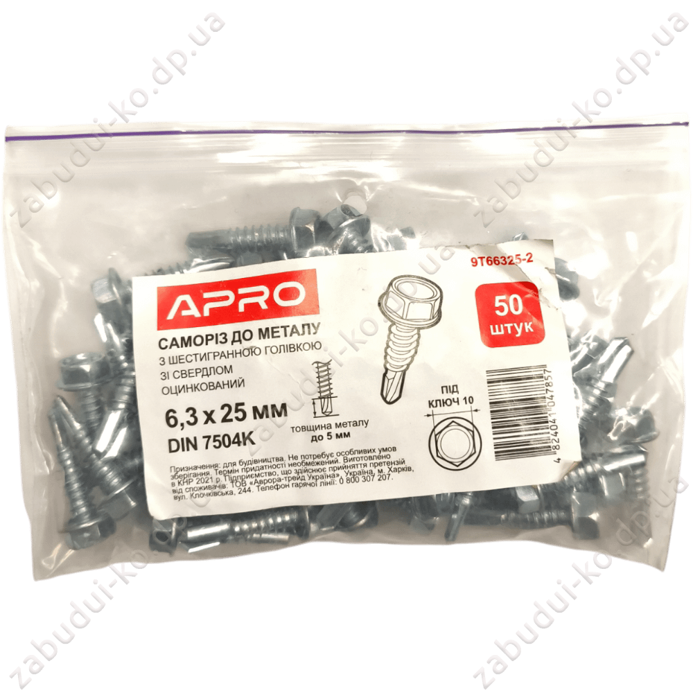Головна Будівельні матеріали Кріплення Саморізи Саморіз покрівельний до металу Apro 6,3х25мм Цинк (50шт)