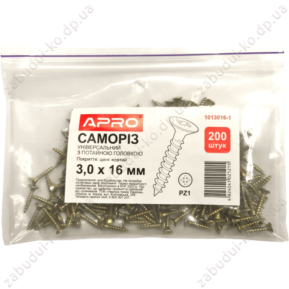 Саморіз універсальний Apro 3,0х16мм (200шт)