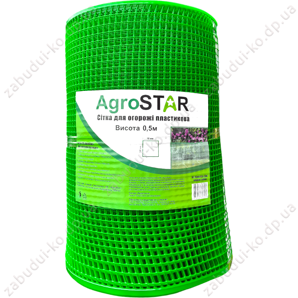 Сітка пластикова для огорожі Agrostar 0,5м К 10х10мм Зелена