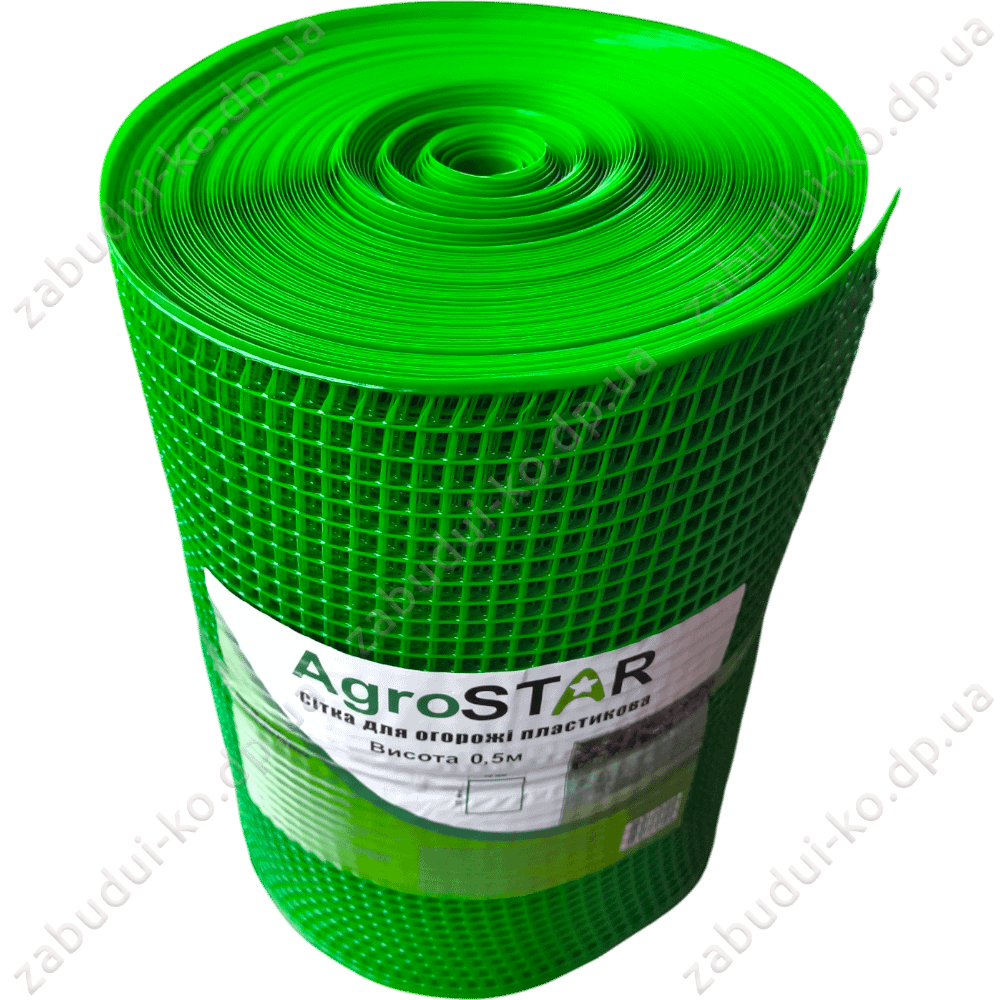 Сітка пластикова для огорожі Agrostar 0,5м Р 15х15мм Зелена